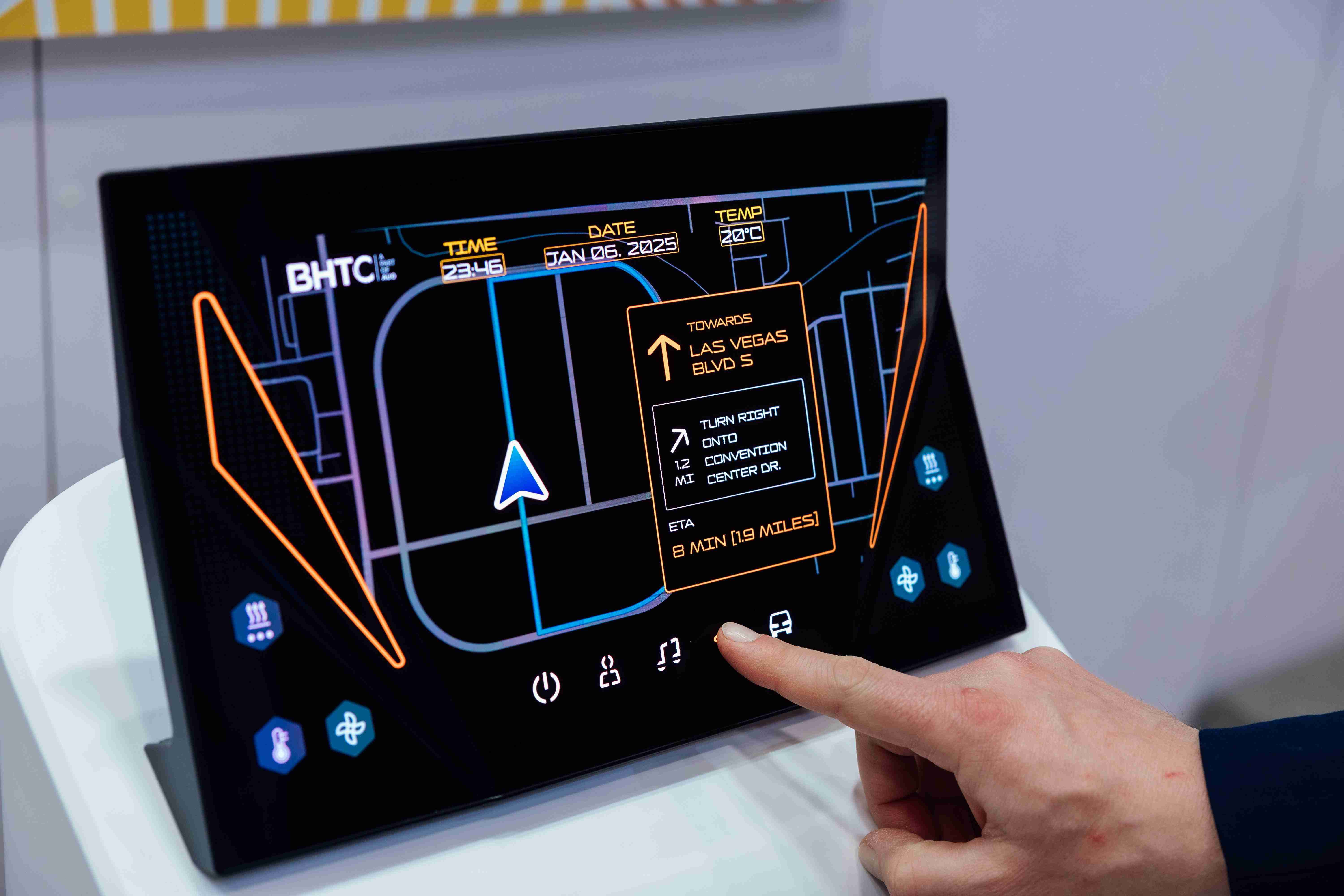 Micro LED可折迭触控显示器(Haptifold Display)结合BHTC多年HMI设计经验,,,,整合中控台和温度控制功能,,以优美的曲面和独特的外型助力车内设计美学,,在辅以触控回馈下,,为驾驶带来更直觉的使用体验。。。。