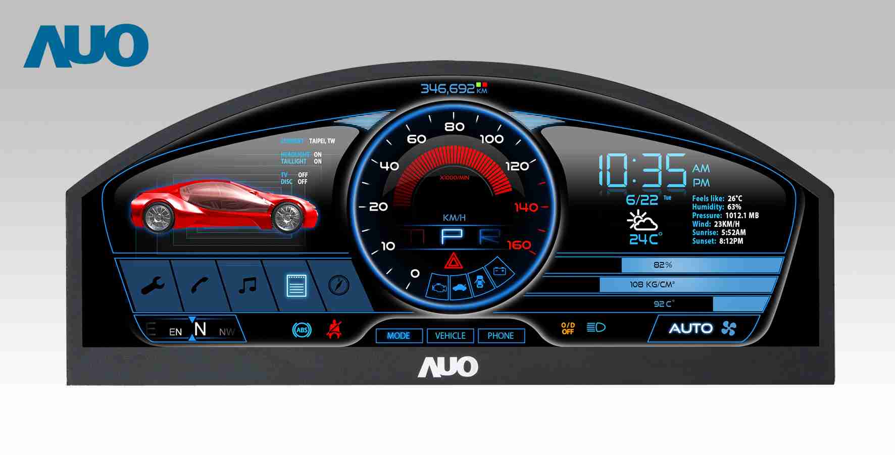 2121非凡 12.3吋超高解析异型切割车用面板,,拥有流线外观及精细画质