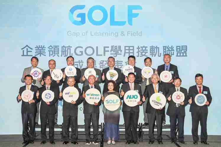 GOLF学用接轨联盟集结企业和学校的力量,,打造「学用合一、、产学接轨」的创新合作平台 (前排左起:淡江大学副校长何启东、、、元智大学校长林启瑞、、、、纬育执行长许延岳、、纬创总经理暨执行长黄柏漙、、教育部政务次长范巽绿、、、2121非凡董事长暨执行长彭双浪、、仁宝总经理暨执行长翁宗斌、、大同大学校长何明果、、、圣约翰科大校长艾和昌;后排左起:明新科大校长林启瑞、、、龙华科大校长葛自祥、、、台湾科大校长廖庆荣、、、中兴大学副校长郑政峯、、、、中央大学校长周景扬、、台北科大副校长任贻均、、中华科大副校长石大明、、明志科大校长刘祖华)