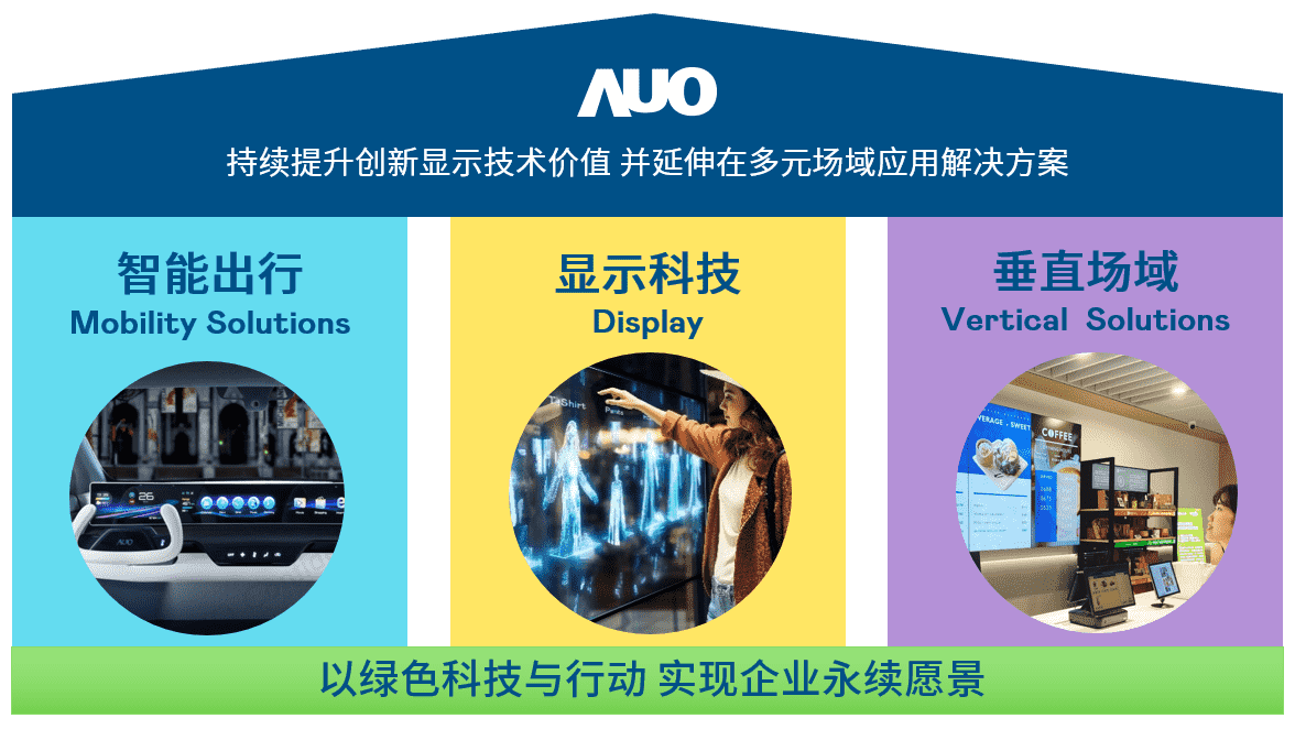 我们持续推动「双轴转型」,,,在精进显示技术附加价值(Go Premium),,,与深化垂直市场应用(Go Vertical)的策略下,,,,对应2121非凡的优势竞争力与趋势,,我们奠定显示科技、、、智慧移动、、垂直场域三大永续营运支柱,,,在显示技术领域的根基之上,,延伸布局多元场域应用解决方案。。。将先进显示科技助力智慧移动及垂直场域发展,,并以绿色科技与行动为实践,,,在转型之路上贯彻永续经营之愿景。。。